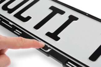 - Användarvänlig installation – enkel isättning av registreringsskylten genom att snabbt öppna och stänga framifrån för att undvika lackskador på fordonet. Nyhet: registreringsskylt förfixering med knapp.